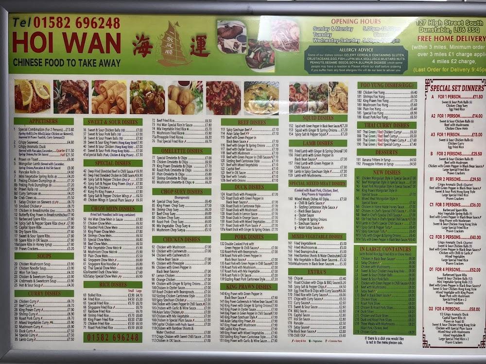Hoi Wan nestles comfortably in the lively town of Dunstable, offering a delightful break from the norm with its authentic Chinese cuisine. The friendly staff ensures a welcoming atmosphere, whether you're enjoying a casual dinner or hosting a gathering with friends. Locals frequently flock here for takeout or dine-in, creating a buzz that fills the air. The location is easily accessible, complete with a wheelchair-accessible entrance and parking.